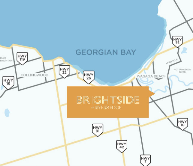Brightside is nestled in the heart of River’s Edge, surrounded by the master-planned community’s lush greenspace. This prime location places residents just minutes from the crystalline waters of Wasaga Beach and the pristine forests along the Nottawasaga River. Easy access to the town’s shopping, dining, schools and recreation, brings everything you need right to your doorstep.